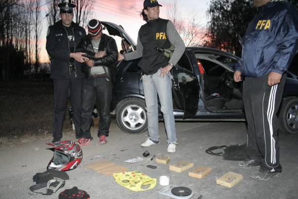 Los policías federales de la Agencia Regional Regional Cuyo interceptaron ayer a las 17,10 a un sujeto con alrededor de 3,600 kilos de marihuana sobre la ruta 20, en 9 de Julio. Néstor Fabián Aciar (46), el sospechoso, llevaba tres panes y medio de droga a bordo de una moto Gilera cuando fue detenido por efectivos al mando del comisario José Bataglia y el subcomisario Raúl Magnoni. Él es de Santa Lucía, y aparentemente iba a vender a Caucete, dado que llevaba una balanza y un cuchillo para fraccionar, dijeron fuentes del caso.