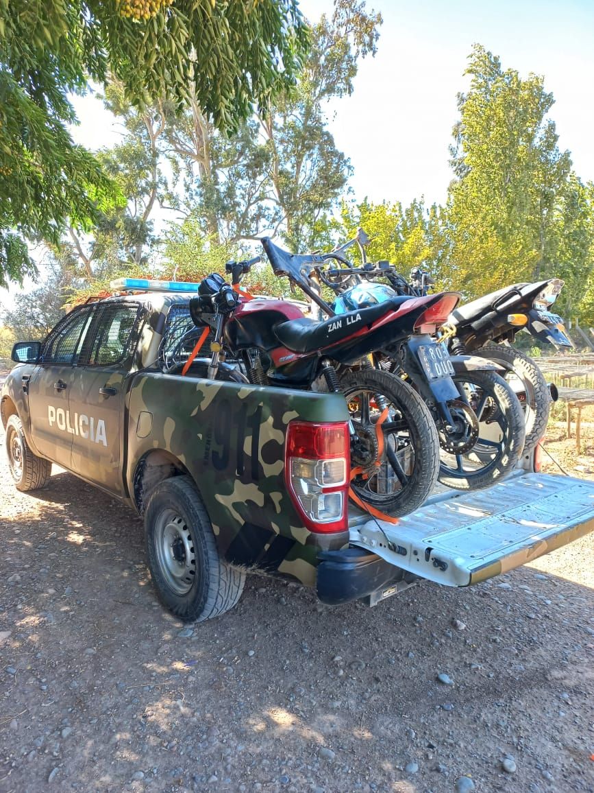 Por otro lado, los investigadores hallaron una moto Rouser 135cc que había sido robada en la vecina provincia de Mendoza y otra Honda Falcon 400cc que registraba pedido de secuestro emanado por el 3er Juzgado de Instrucción de la provincia, por el delito de hurto calificado.