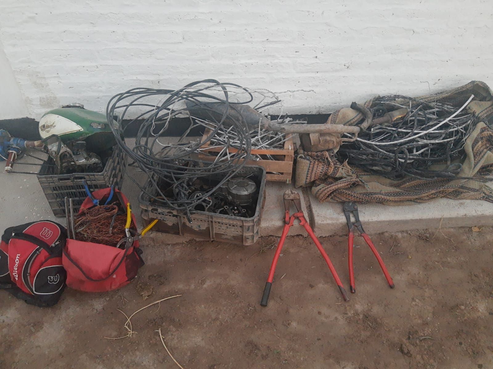 Según fuentes de la Fuerza, los pesquisas secuestraron 7 kilogramos de cobre (perteneciente al bobinado de bombas), unos 20 kilogramos de cables de aluminio y 3 motocicletas (una Zanella 150cc, una Cerro 150cc y una Motomel 110cc) que presuntamente fueron utlizadas por delincuentes para trasladar esos efectos sustraídos.