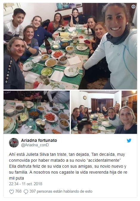 La difusión de las fotos en una celebración de Julieta Silva, la mujer condenada a tres años y nueve meses de prisión por atropellar y matar a su pareja, Genaro Fortunato, el 9 de setiembre del año pasado a la salida de un boliche en San Rafael, Mendoza, desataron la furia de la familia del joven rugbier.