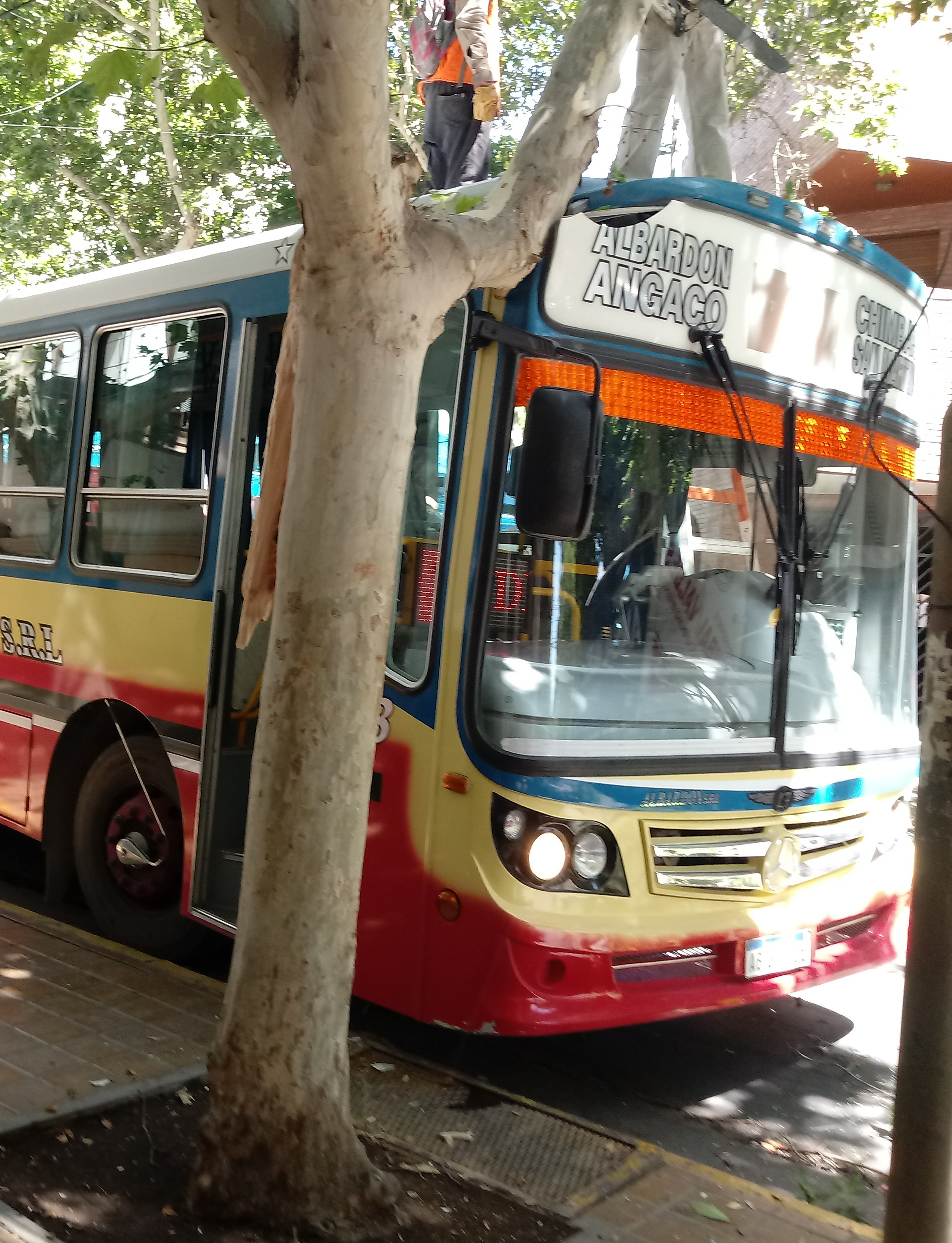 Un colectivero de la línea 20 de la empresa Albardón terminó sobre las 11 de ayer con el micro incrustado en la rama de un gran plátano en calle Mitre, metros al Oeste del cruce con Mendoza, en el microcentro capitalino. El propio chofer, que no se identificó, explicó a este diario que el accidente se produjo cuando intentó abrirse para pasar a un camión estacionado a su izquierda. No hubo heridos.