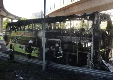 Un micro de la empresa ‘Autotransportes San Juan’ que llevaba pasajeros hasta la ciudad de La Plata, en Buenos Aires, terminó totalmente destruido por las llamas que se originaron, al parecer, en la zona de la bodega ubicada en la parte trasera el micro, informaron ayer fuentes de la empresa. Ocurrió durante la mañana en la salida de la autopista 25 de Mayo, cuando empalmaba con Huergo, en Puerto Madero. Ni los choferes ni los pasajeros salieron heridos, pero las llamas destruyeron el equipaje, precisó una testigo al canal de noticias TN.