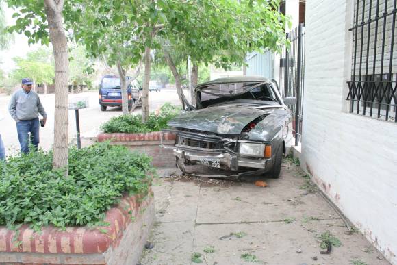 Pudo ser peor la suerte del dueño de un Ford Falcon. Porque cuando viajaba por Hipólito Irigoyen al Sur y pasó las vías frente al barrio Wilkinson, en Capital, arrasó un árbol y un cartel colocado en un trozo de riel, en el que quedó enganchado un pedazo de puerta. Y paró su descontrolada marcha al incrustarse entre una casa y un cantero. Fue a las 6 de ayer, probablemente luego de dormirse. El conductor no fue identificado en la policía.