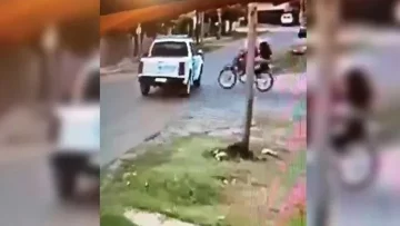 En un video, captado por una cámara de seguridad de la zona, se ve el momento del accidente vial, en el cual los dos ladrones que huían en la moto volaron por el aire y cayeron a la cinta asfáltica.