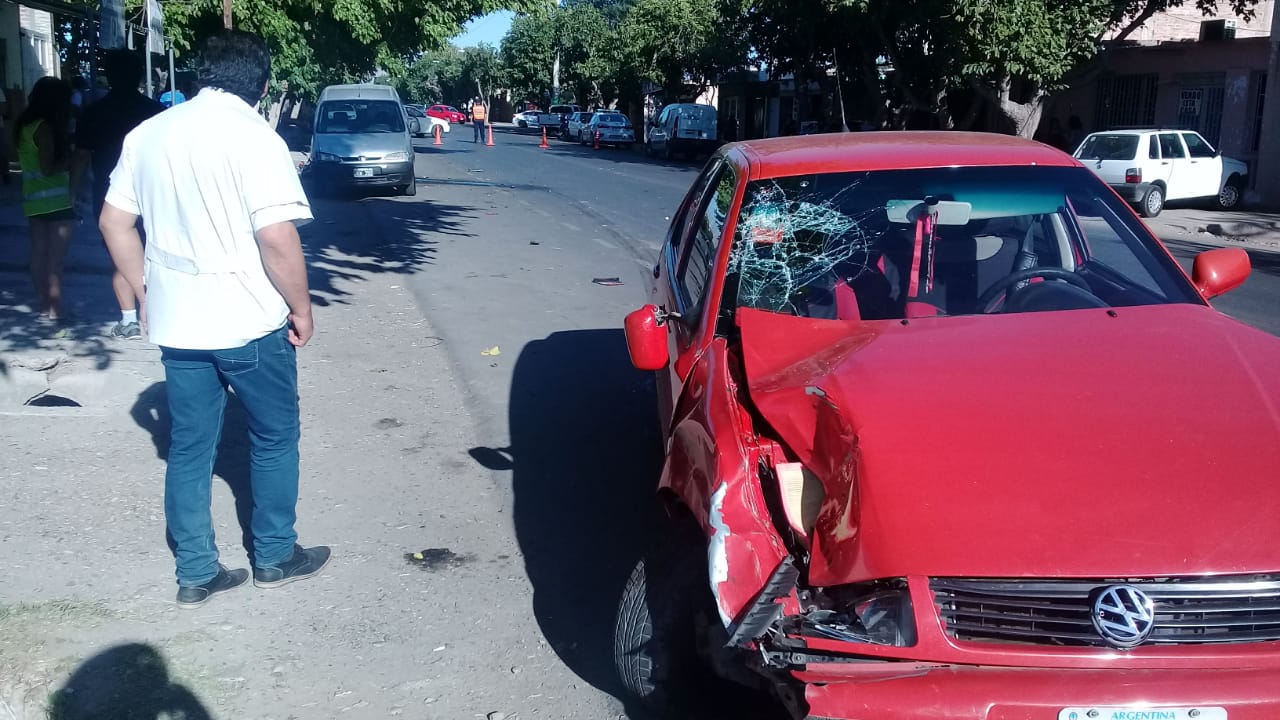 El costado derecho delantero de un viejo VW Polo quedó destrozado. El parabrisas también roto, producto del impacto de la cabeza del motociclista. Así terminó el vehículo con el que impactó una moto este sábado en la mañana, poco antes de las 8:30, en calle Comandante Cabot pasando 1 de Mayo, en Rivadavia.
