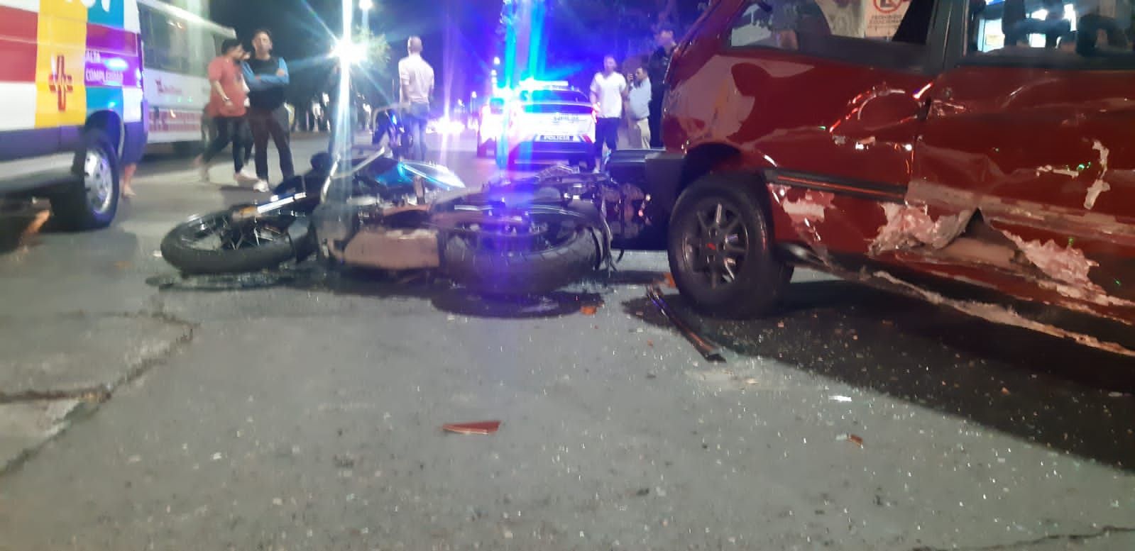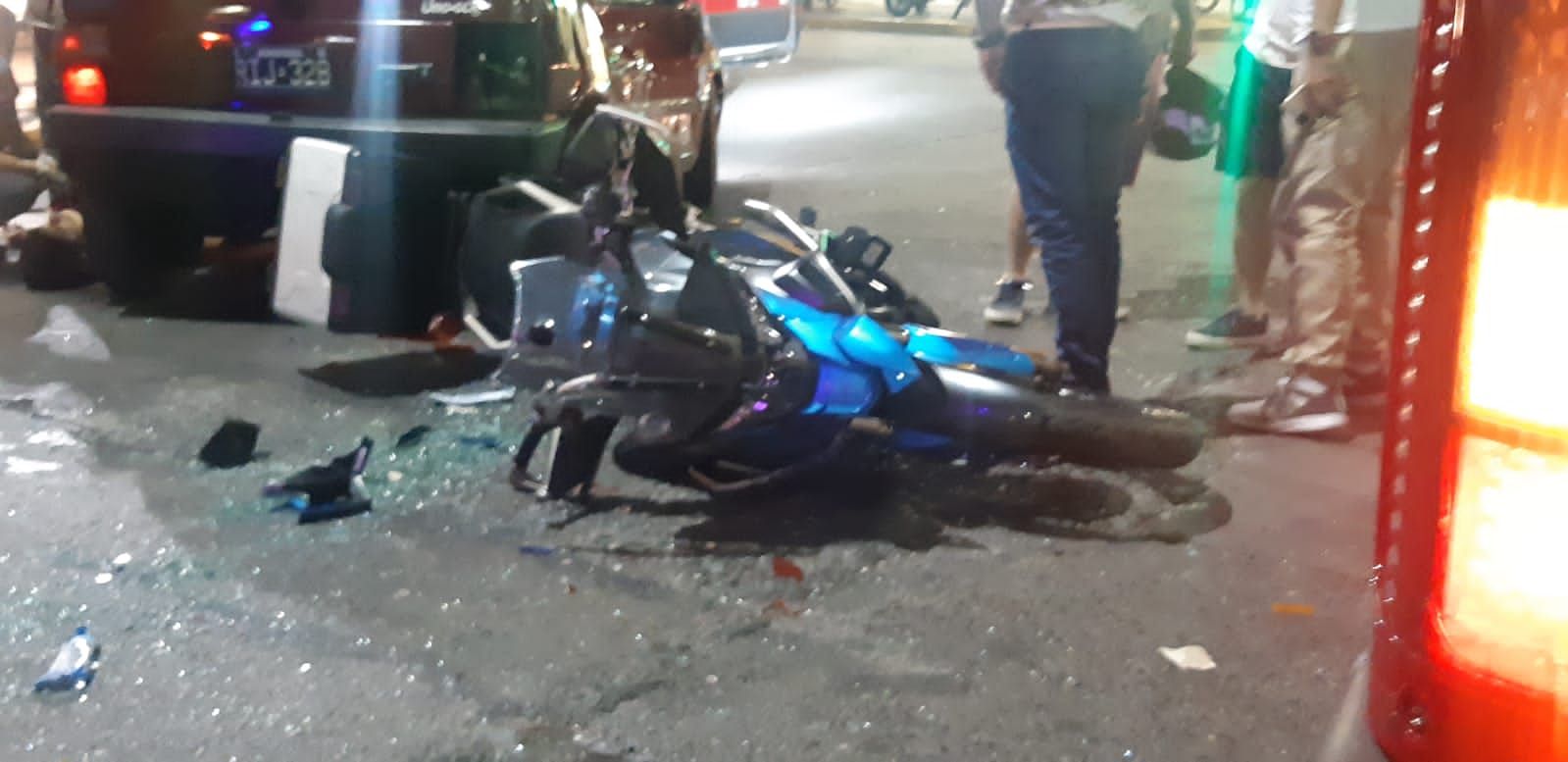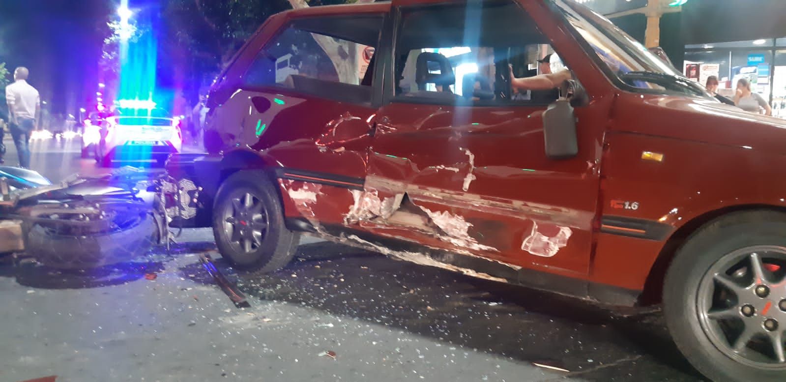 Producto del siniestro vial, el conductor de la moto de alta cilindrada y también el del auto quedaron sobre el pavimento y con heridas para luego ser hospitalizados, mientras que los vehículos sufrieron serios daños.
