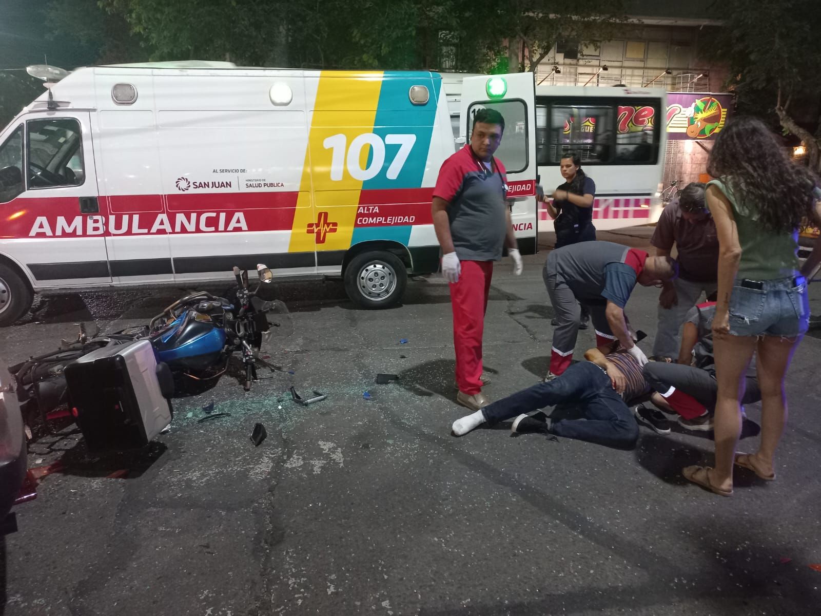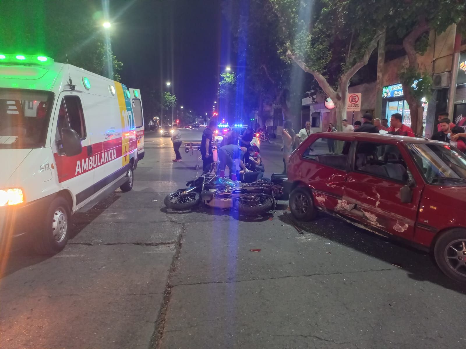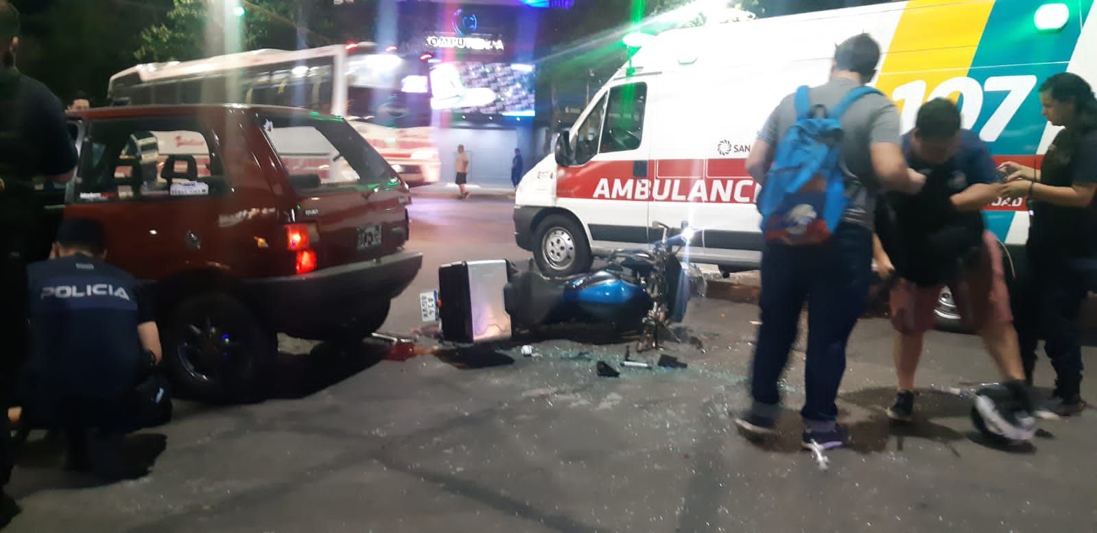 Producto del siniestro vial, el conductor de la moto de alta cilindrada y también el del auto quedaron sobre el pavimento y con heridas para luego ser hospitalizados, mientras que los vehículos sufrieron serios daños.