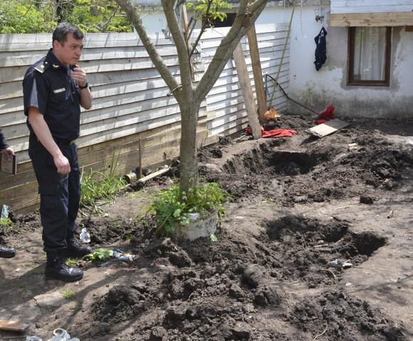 Contó que el homicida habría confesado el hecho el domingo pasado durante una discusión con unos familiares. Con esos datos personal de Bomberos y de Policía Científica se dirigió al lugar y descubrieron que debajo del pelotero donde jugaban los niños había tierra removida. A partir de allí, se iniciaron las tareas de excavación y detectaron que a unos 30 centímetros de profundidad se encontraba el cadáver de la mujer. ‘El pelotero fue fabricado por el hombre y en él jugaban los niños, sin saber que su madre estaba muerta debajo’, dijo el fiscal.