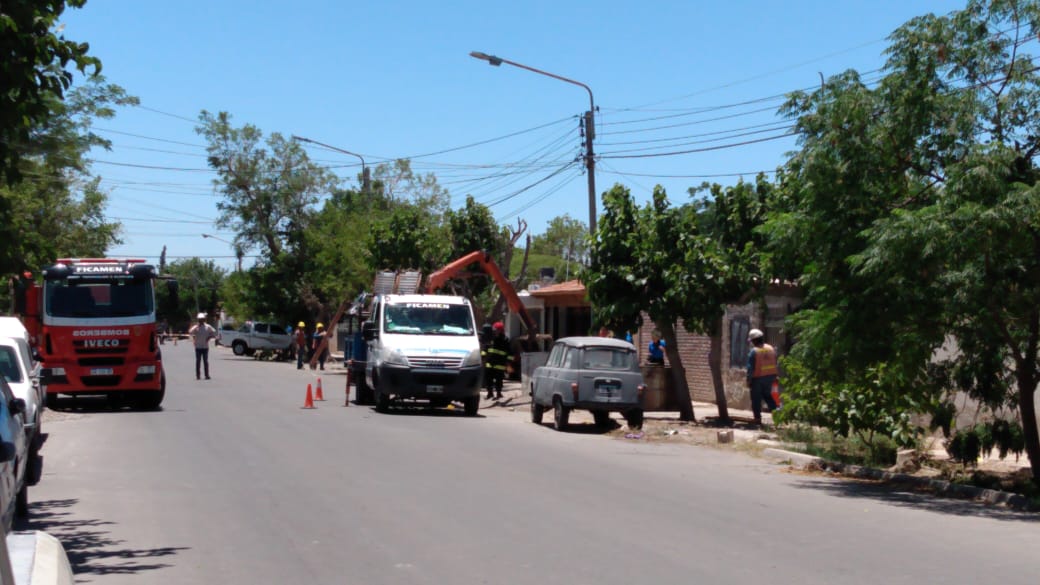 Lucas Novaro, de 24 años de edad, se encontraba trabajando en un tendido ubicado sobre calles Quiroga y Valle Fértil, de Rawson, cuando sufrió el accidente.