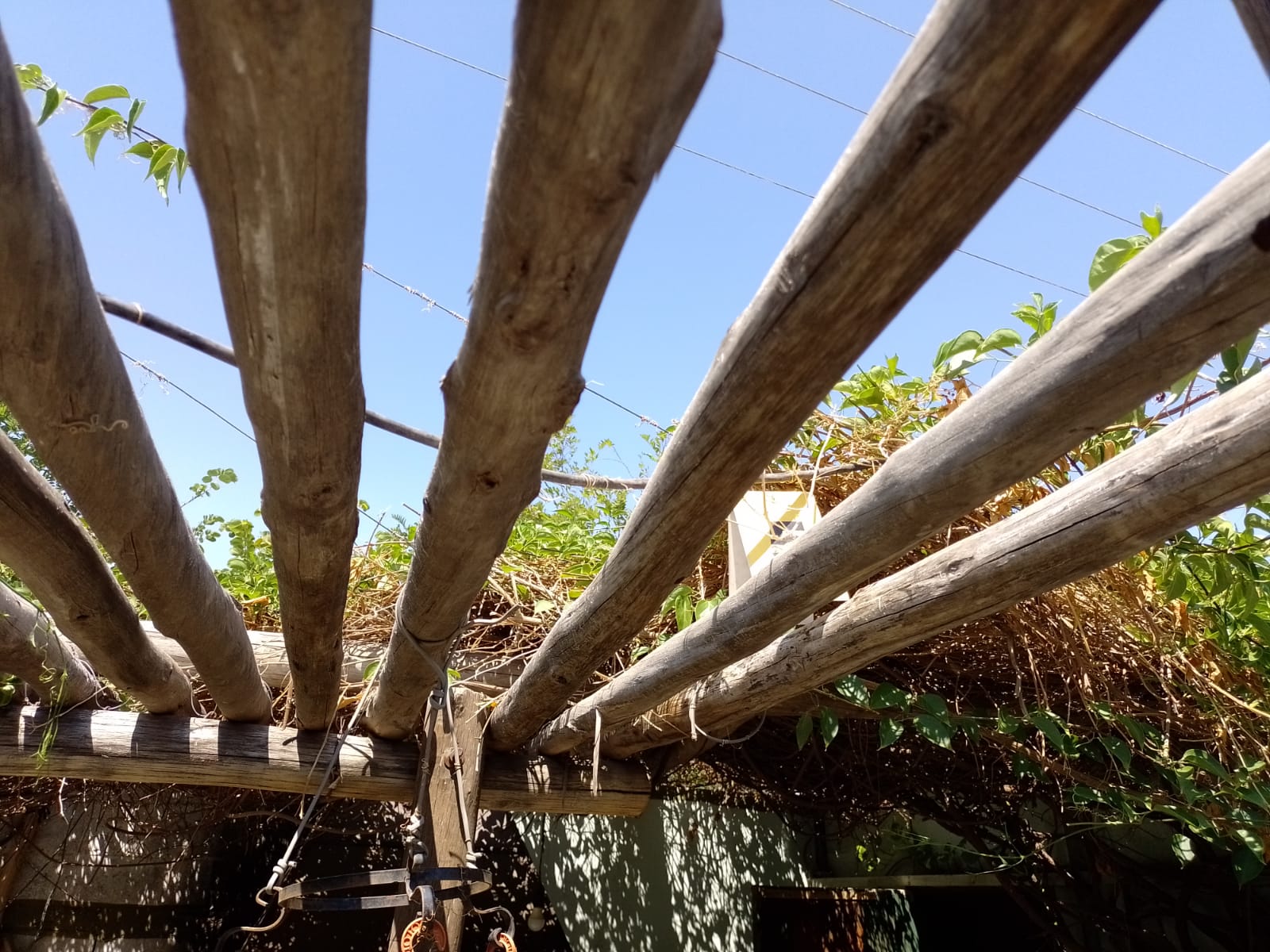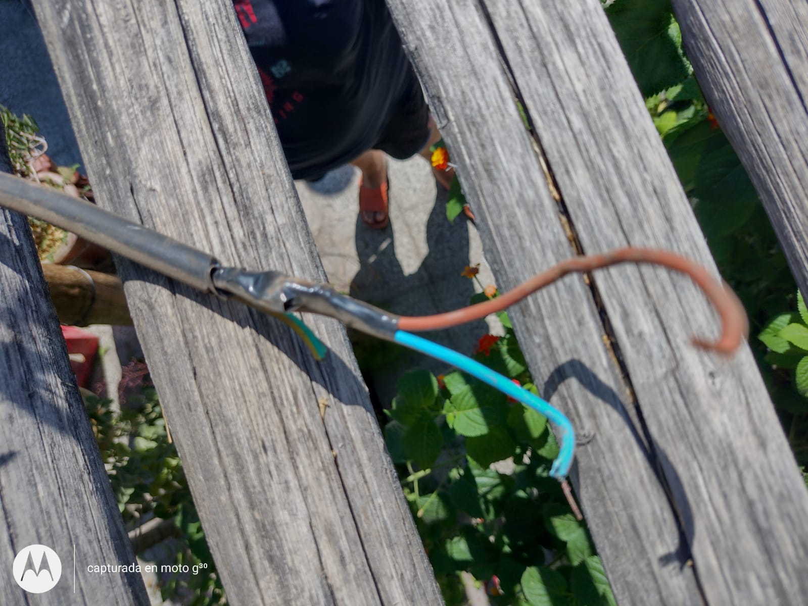 En un momento, cuando quiso cortar una rama con la tijera metálica (sin protección en el mango) tocó un cable que se encontraba en malas condiciones y recibió una descarga eléctrica letal, quedando tendido sobre la estructrura de madera, ya sin signos vitales.
