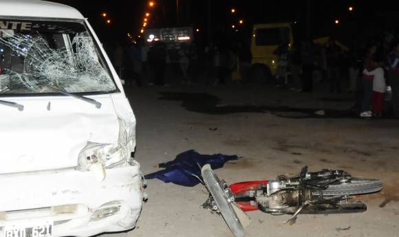 Un nene de 2 años que viajaba en el tanque de la moto que conducía su papá de 18 años acompañado de otro chico de 16, perdió la vida anoche al estrellarse contra el parabrisas de una combi Hyundai, el otro vehículo involucrado en ese letal choque frontal, dijeron fuentes policiales.