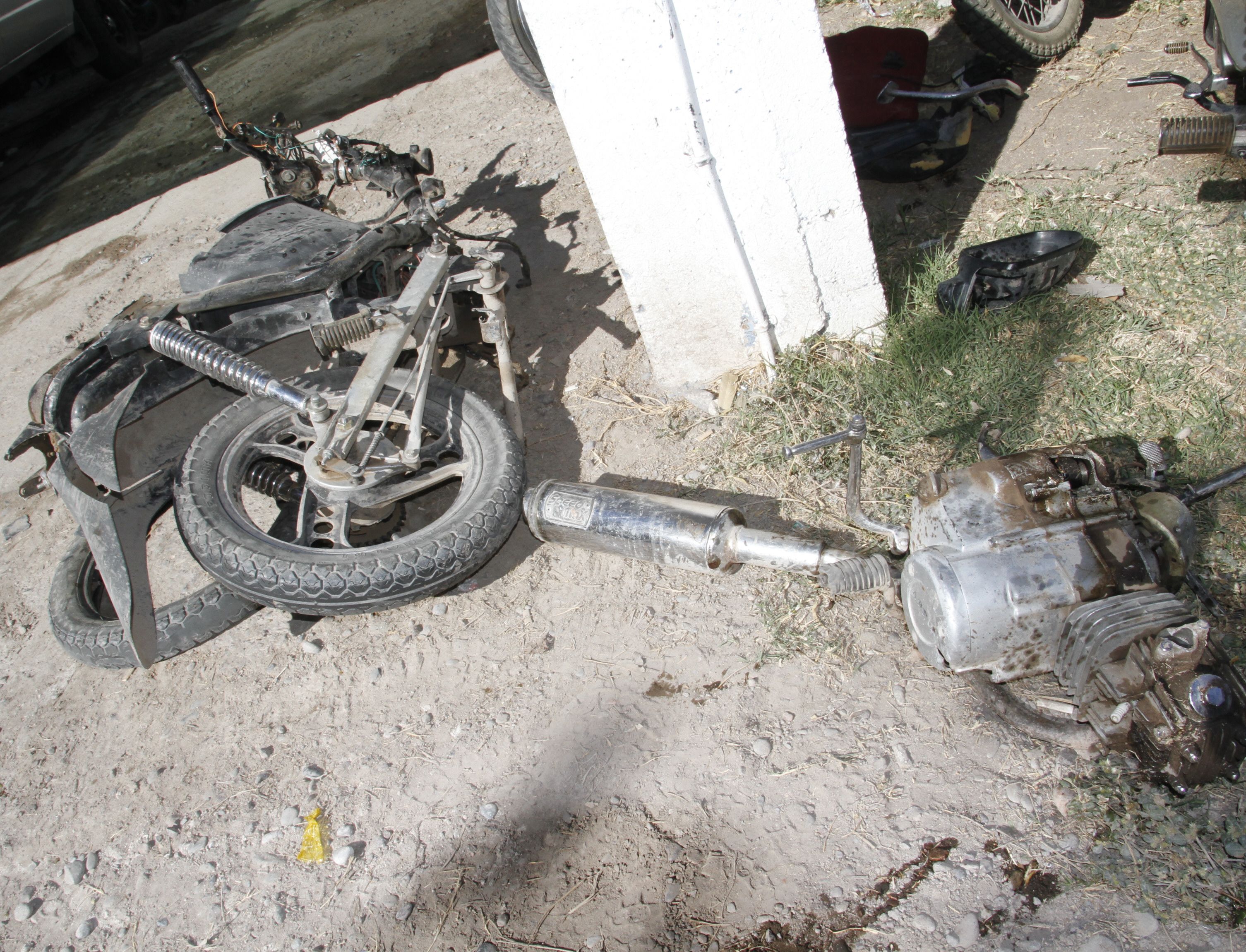 Tal fue la fuerza del impacto, que por muy poco la rueda delantera izquierda del auto no quedó desprendida por completo. La otra cara de ese violento choque fue mucho peor: una moto que quedó totalmente destrozada y, lo más grave, su conductora sin ninguna chance de supervivencia.
