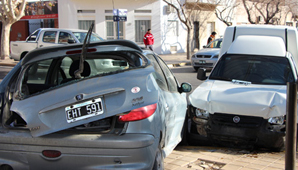 San Juan, 30 de julio.- El conductor de un Peugeot 206 que circulaba por Santiago del Estero y al llegar a calle Mitre, chocó con una camioneta y terminó en la vereda.
