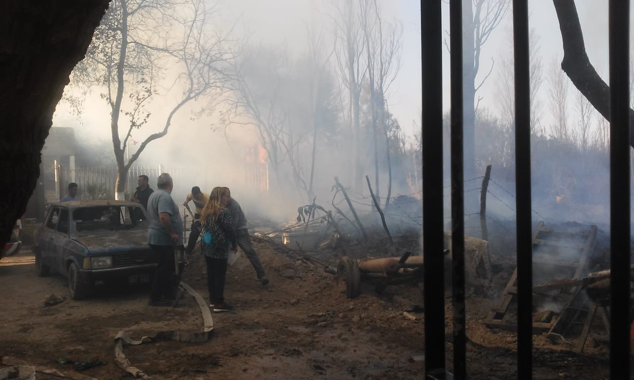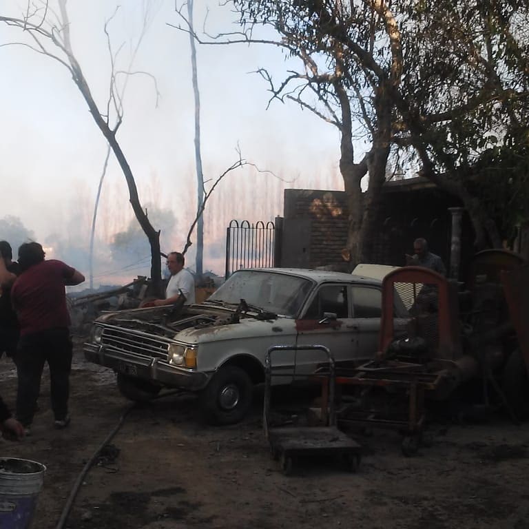 Según las fuentes, cuatro dotaciones de Bomberos de la Policía de San Juan y Voluntarios de Chimbas trabajaron para sofocar un siniestro que comenzó en unos cañaverales que lindan con una casa donde funciona un taller mecánico.