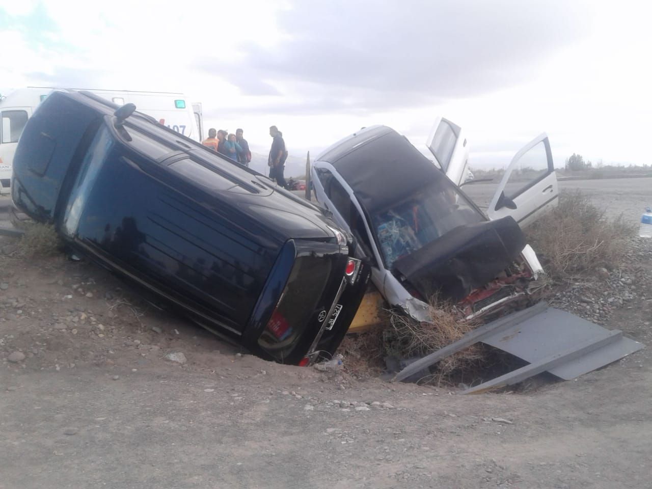Tras el impacto, uno de los vehículos quedó incrustado de punta en la banquina y el otro, de costado.