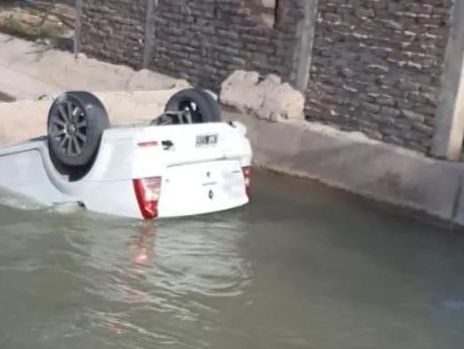 Personal del cuartel de Bomberos Voluntario de Chimbas llegó hasta el lugar para extraer el auto del cauce. Afortunadamente no hubo herdidos, sólo se produjeron daños materiales.