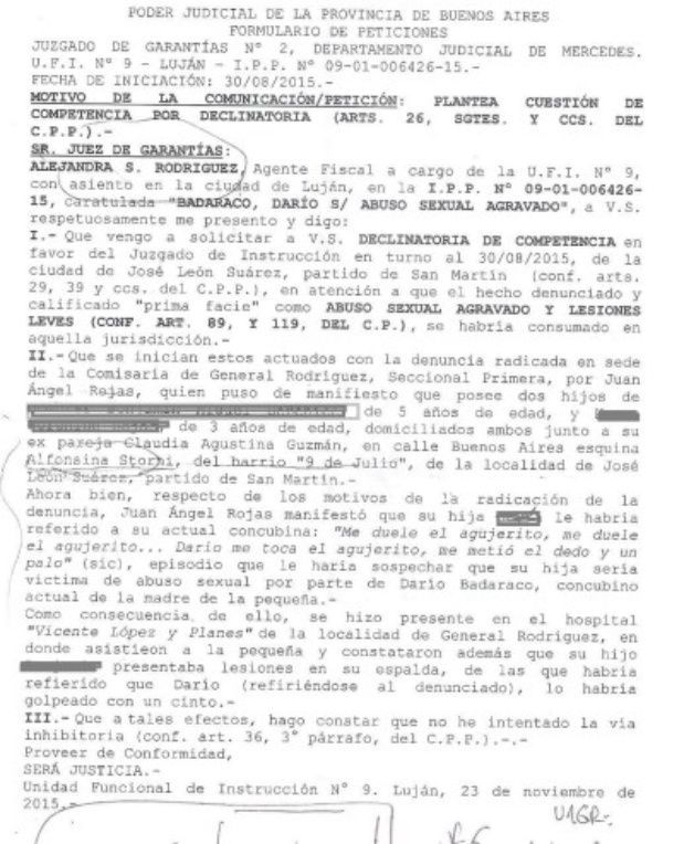 El último, por abuso agravado de menores, no prosperó por culpa de la madre de la nena de tres años y actual pareja de Baradacco. La misma, pese a que la causa había sido derivada a la UFI 4 de San Martín, negó los hechos y la fiscalía terminó por archivar la denuncia.