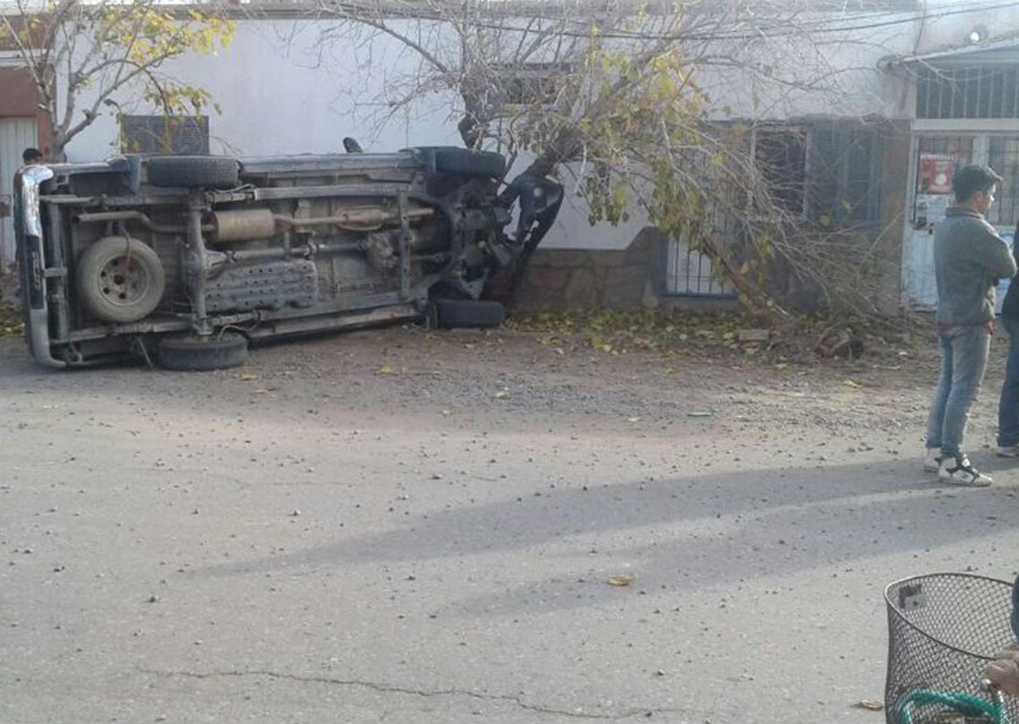 Un motociclista y el chofer de una Toyota pelearon. El motociclista tomó un remís, subió a la caja de la Hilux y el otro hombre huyó hasta volcar