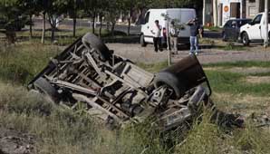 San Juan, 9 de marzo.- Otra vez se produjo un accidente en la peligrosa Ruta 40. Esta vez, en el cruce con calle Porres, de Chimbas. Por causas que se desconocen, una camioneta Chevrolet volcó al colisionar con un taxi.