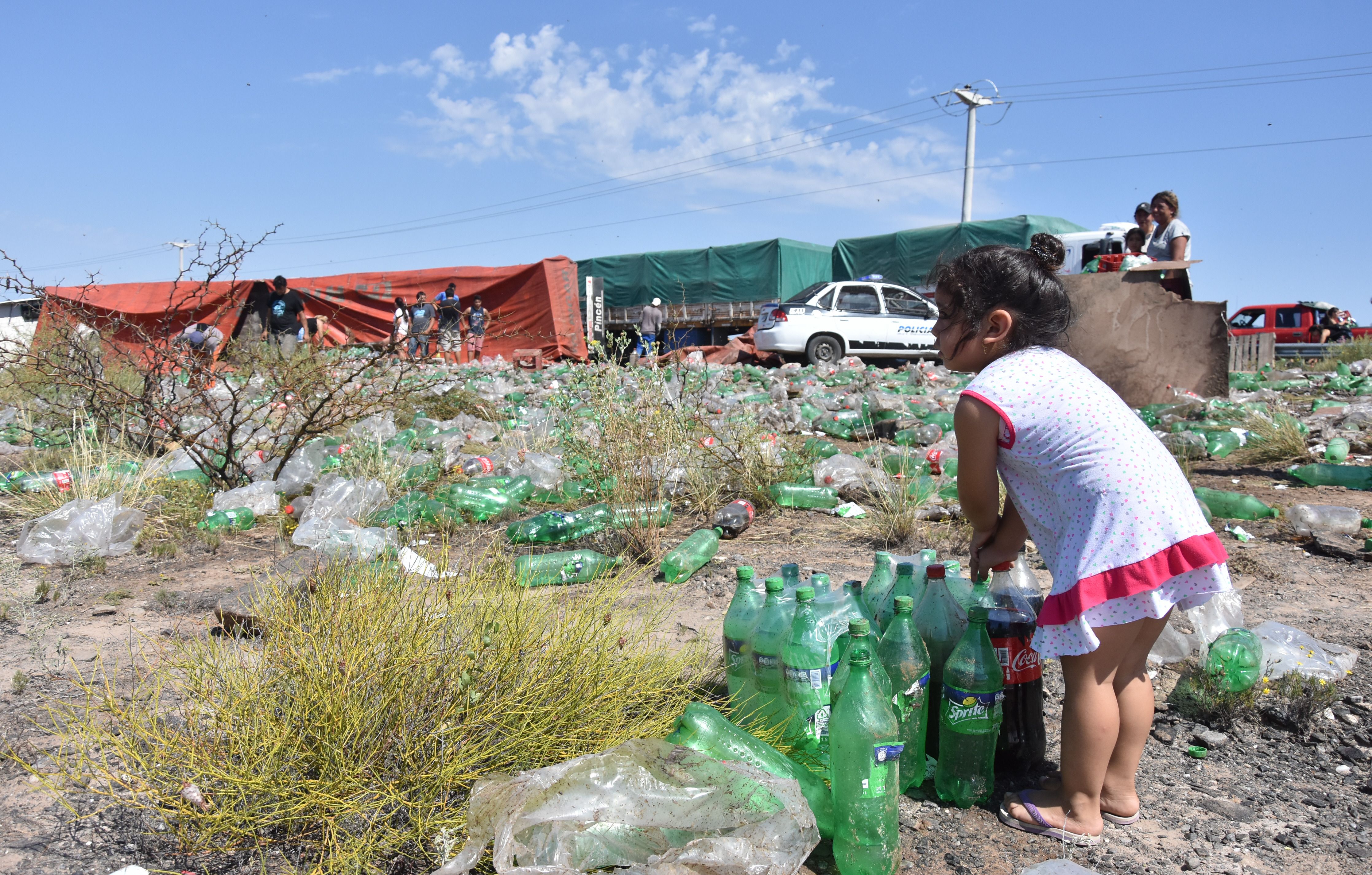 Gente que pasaba en vehículos, los lugareños que no dudaron en acercarse con niños y todo. Y, cuando se corrió la voz, hasta supuestos comerciantes que llegaron en camionetas a llevarse centenares de gaseosas hasta que en el lugar sólo quedaron los restos de la mercadería dañada.