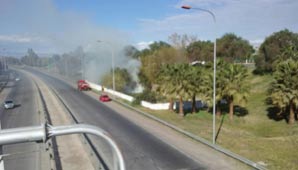 San Juan.- Tal como sucedió la semana pasada, hoy se incendió otro tramo del pasto de la Avenida de Circunvalación. Aunque fue de pequeñas dimensiones, se necesitó de la presencia de Bomberos para apagar el siniestro.