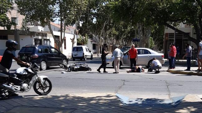 El cruce de Avenida Libertador y Caseros sumó en la mañana de hoy otro violento accidente. En esta oportunidad un auto chocó a una moto en la que viajaban dos personas.
