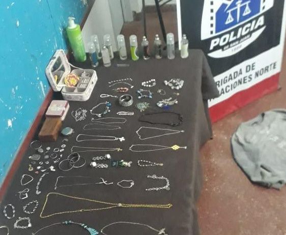 Policías de la Brigada Norte, al mando del oficial principal Sergio Barrionuevo, allanaron un domicilio de la Villa San Patricio, Chimbas, y detuvieron a "El Bobo" Orozco (34) y a su pareja "La Lili" Gómez (39), al hallarles gran parte de los elementos que aparentemente robaron el 8 de este mes de una casa del Barrio Jardín Policial, en Rivadavia, como alhajas, relojes, prendas y un TV 42". También les secuestraron el auto Renault 11 con el que habrían trasladado el botín, informó la Policía.