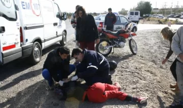 Una pareja en moto terminó quebrada ayer a las 11 al chocar contra una combi cuyo conductor giró en U para entrar a un laboratorio en ruta 40, entre 7 y 8, Pocito. Según la Policía, Rodrigo Pérez (26) sufrió fractura expuesta de tibia derecha y Romina Martínez (25) en fémur derecho y de cadera.