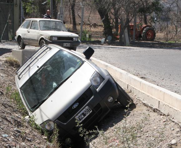 Un hombre se llevó un enorme susto ayer, minutos antes de las 13, al pasar de largo en una curva y volcar en una zanja en su Ford Ecosport. Esto ocurrió en el lateral Oeste de Ruta 40, metros al Norte de Calle 5, en Rawson. En la Policía informaron que el chofer salió ileso y que el siniestro habría ocurrido por un error de cálculo del conductor al ingresar a la curva.