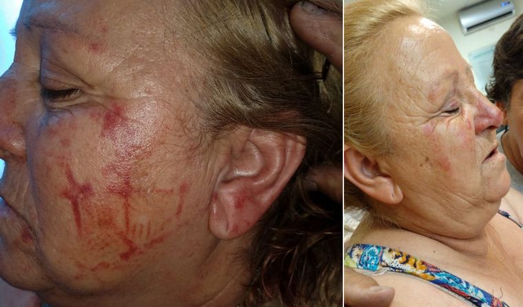 La revoleó sin asco, como si fuera una bolsa de basura. No contento con eso, le pateó la cabeza y le pisó la cara en al menos cinco oportunidades para arrancarle la mochila. No pudo. Fue tal la brutalidad con la que el ladrón la atacó e intentó robarle que le dejó la marca de la suela de la zapatilla en una de sus mejillas.