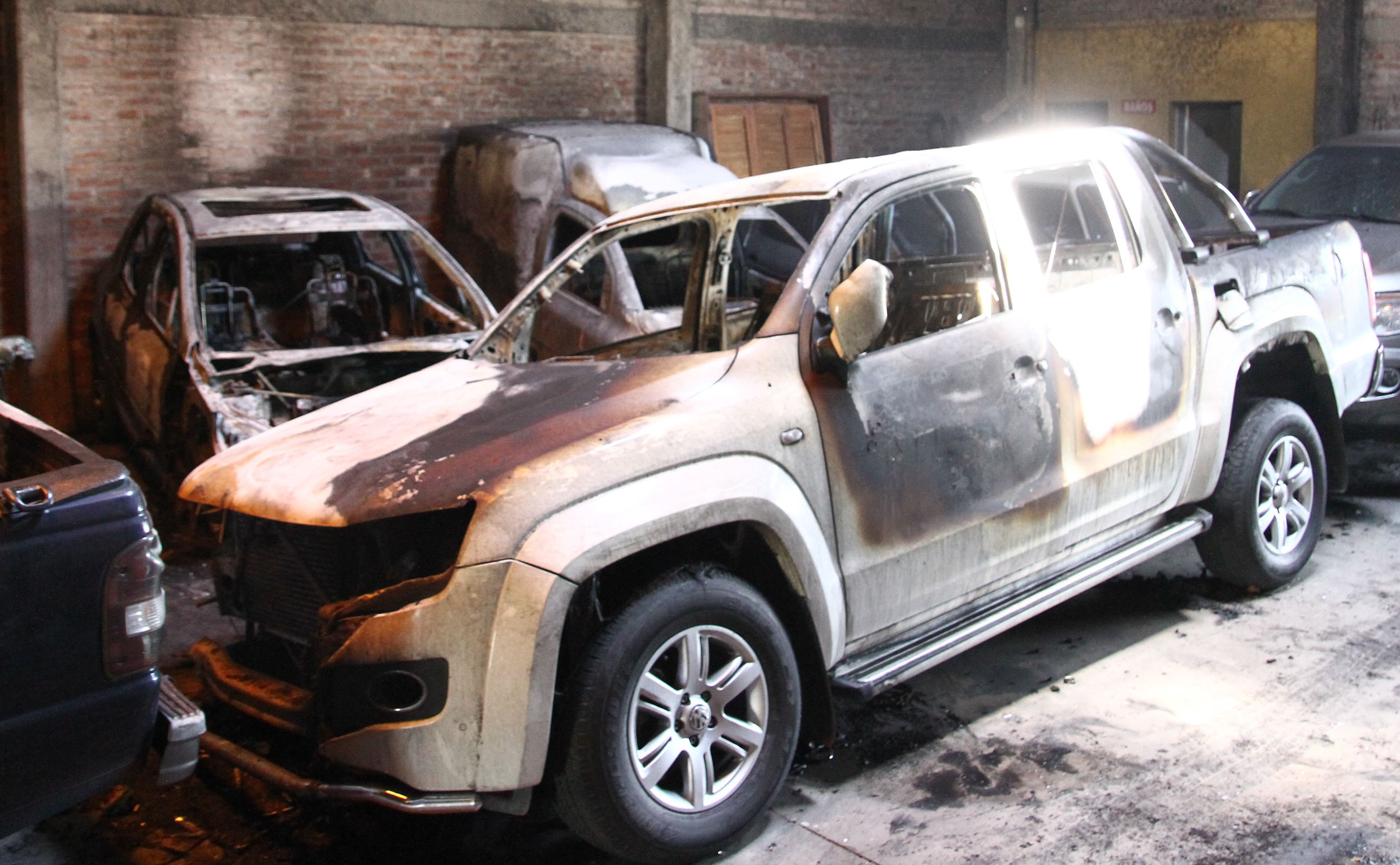 El fuego afectó en diferente medida al menos a 7 vehículos (4 camionetas y 3 autos) que la víctima tenía a la venta. Se trata de dos Ford Ranger, una Volkswagen Amarok, una Fiat Fiorino, un Ford Focus y dos Peugeot, un 206 y un 307. Varios de esos vehículos quedaron directamente reducidos a chatarra, explicaron los voceros.