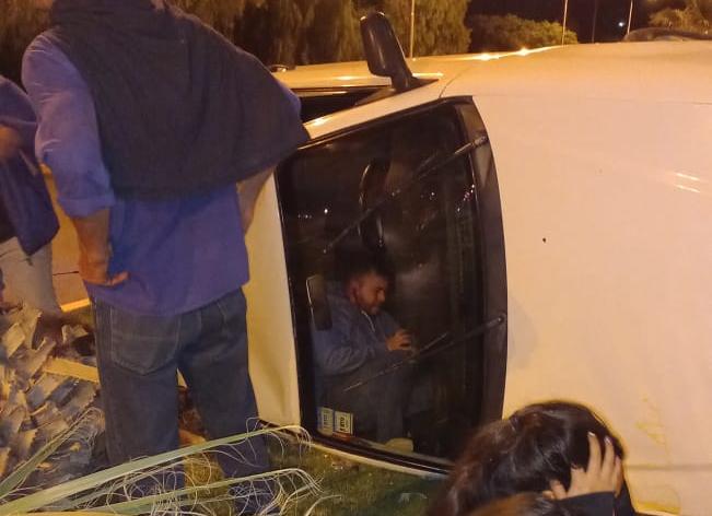 Una joven pareja protagonizó un espectacular vuelco en la zona conocida como la ex curva de los tontos, en Rivadavia. Los ocupantes del auto resultaron ilesos.