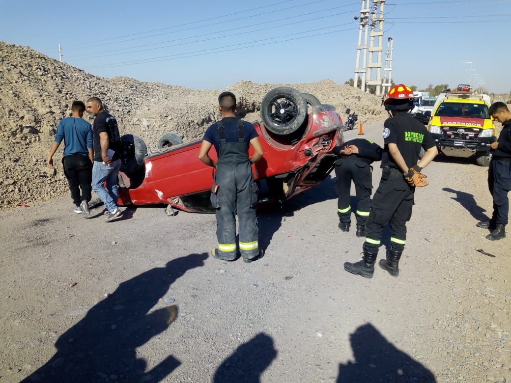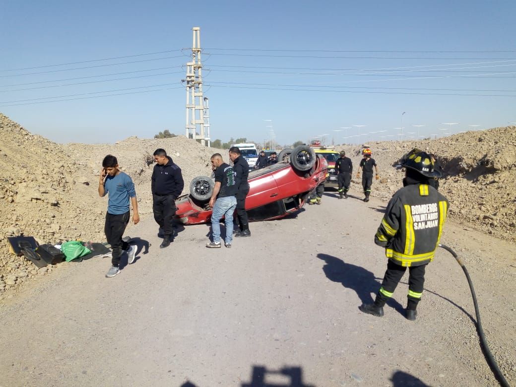 Un impresionante vuelco se produjo ayer por tarde, en Chimbas, luego de que el conductor perdiera el control. Por fortuna, el nombre no sufrió heridas de importancia.