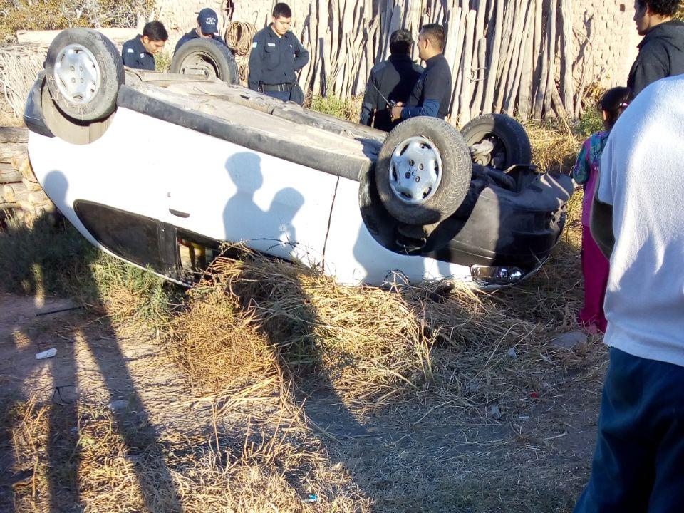 Cerca de las 17, un auto que circulaba por Callejón Ullum antes de Coll terminó boca abajo. Según fuentes policiales, un joven de 23 años perdió el control del Fiat Palio y volcó.