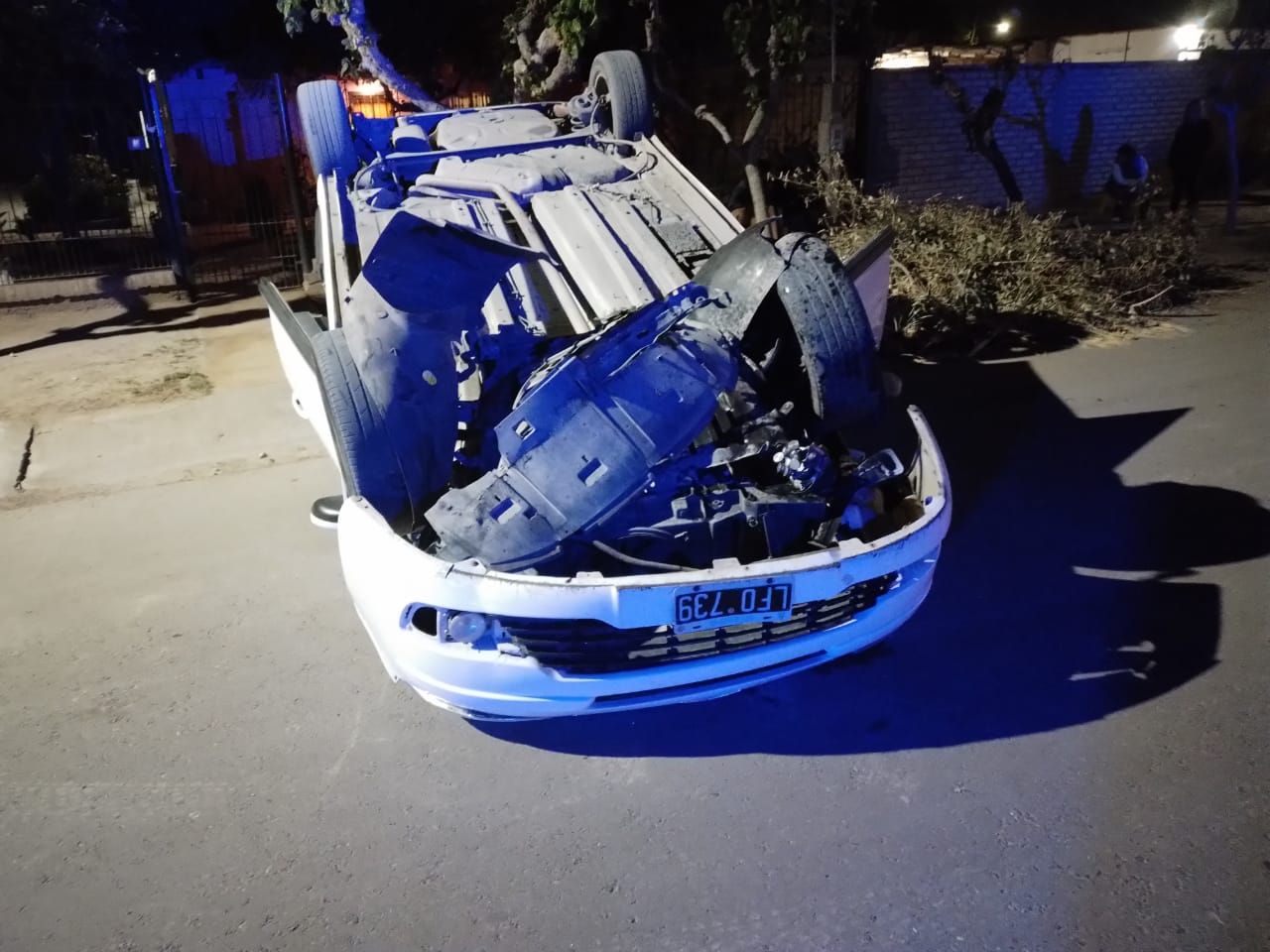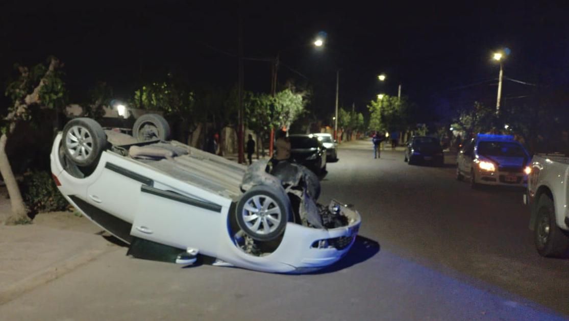 Durante la madrugada de este lunes se produjo un aparatoso accidente de tránsito en el interior de un barrio de Chimbas: un auto quedó dado vuelta en medio de una calle.