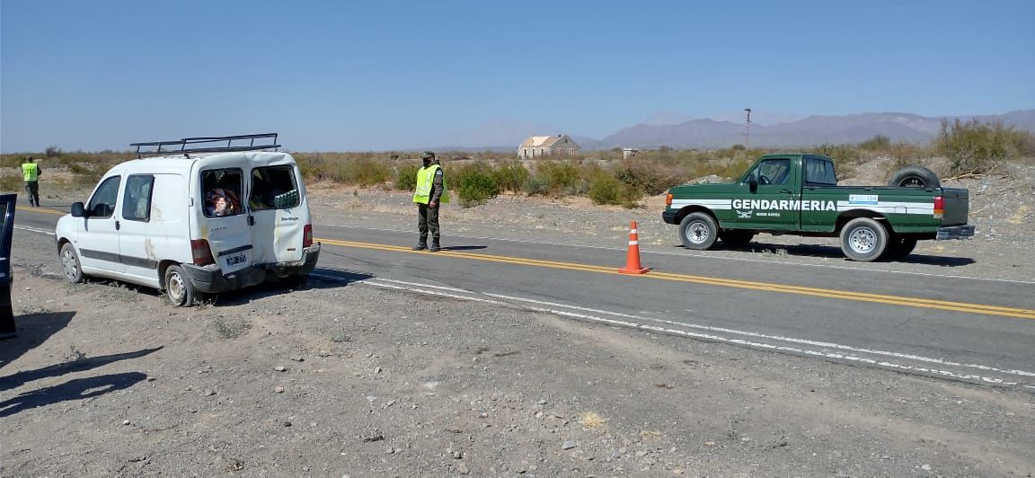 Personal de Gendarmería y del hospital San Roque se hizo presente constatando lesiones leves, por lo que los hombres accidentados en decidieron regresar a la ciudad de San Juan en vehículo siniestrado.