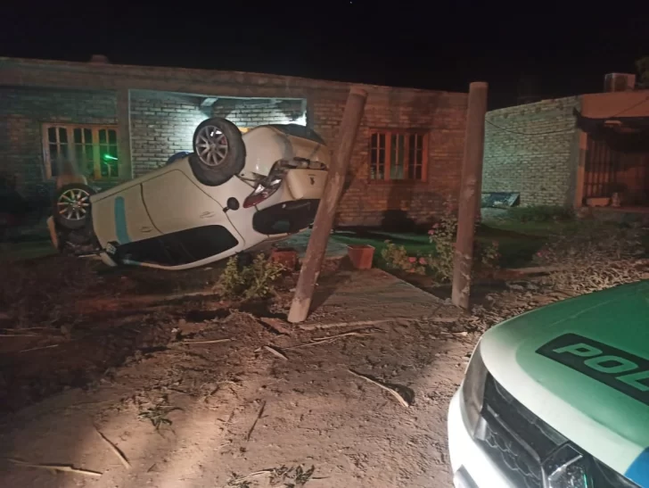 El joven conductor de un vehículo perdió el control, volcó y terminó en el jardín de un domicilio. El hombre fue trasladado al Hospital de Pocito con algunos golpes, pero fuera de peligro.
