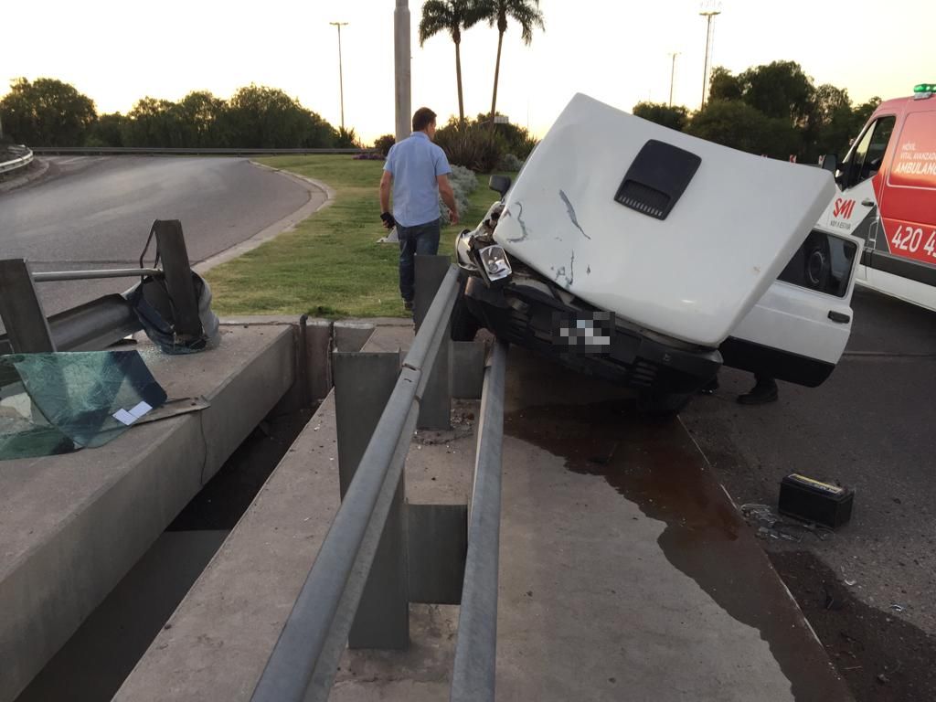 El conductor de un Fiat 147 perdió el control y terminó estrellándose contra el guardrail. Su acompañante sufrió la quebradura de una de sus piernas.