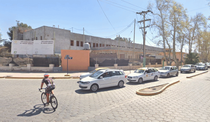 La mala maniobra terminó con el auto contra el portón de la obra de ampliación del nosocomio en Rivadavia.