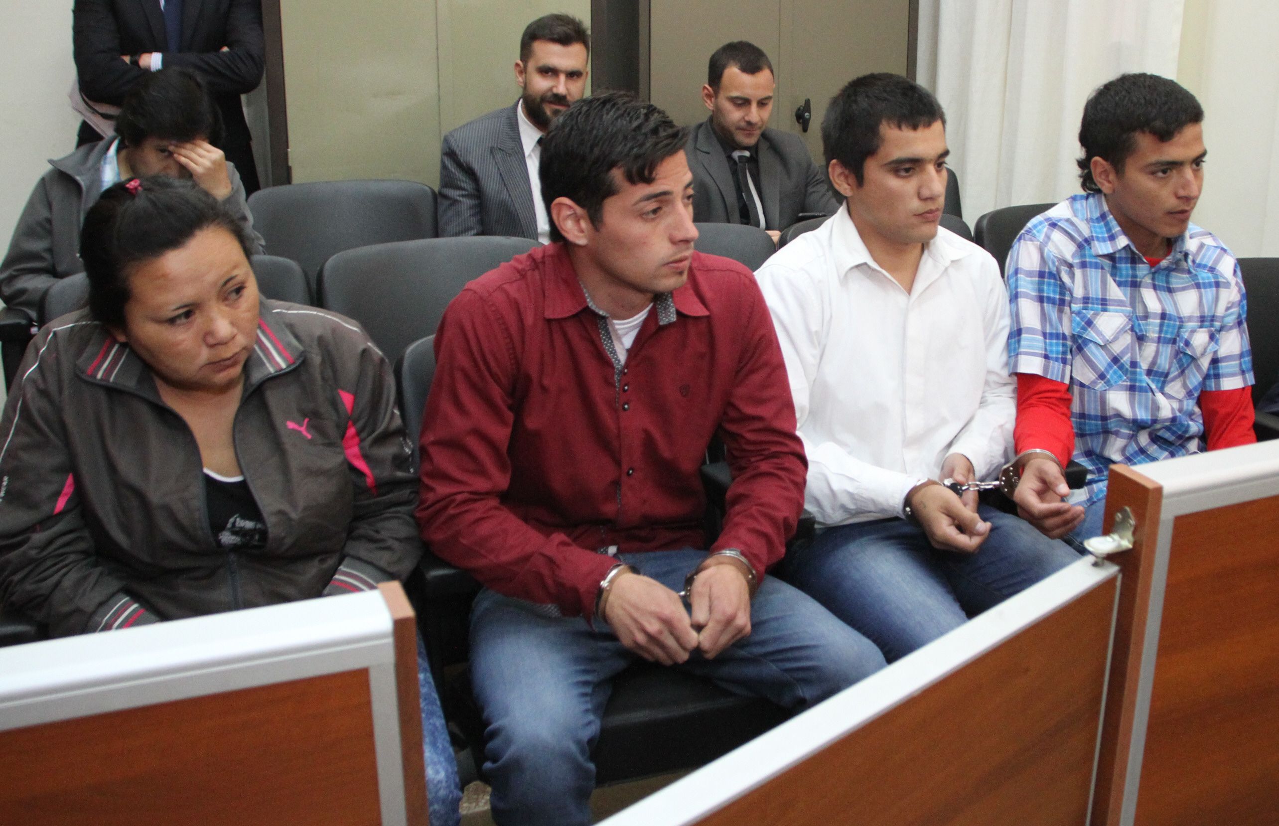 De izquierda a derecha, Aldana Herrera, condenada a 12 años por participación secundaria, y los tres condenados a perpetua: Alexis Benegas (coautor), José Alfredo Palacios (partícipe principal) y Esteban Salinas (coautor)
