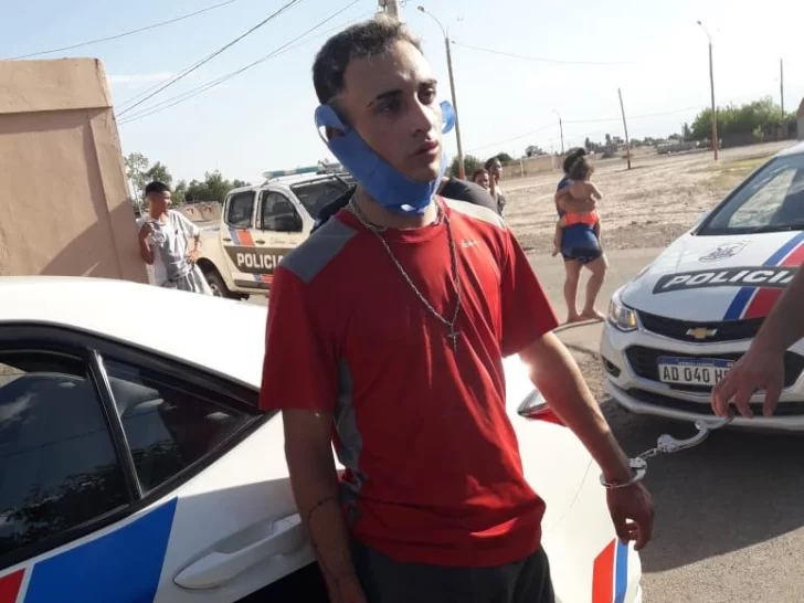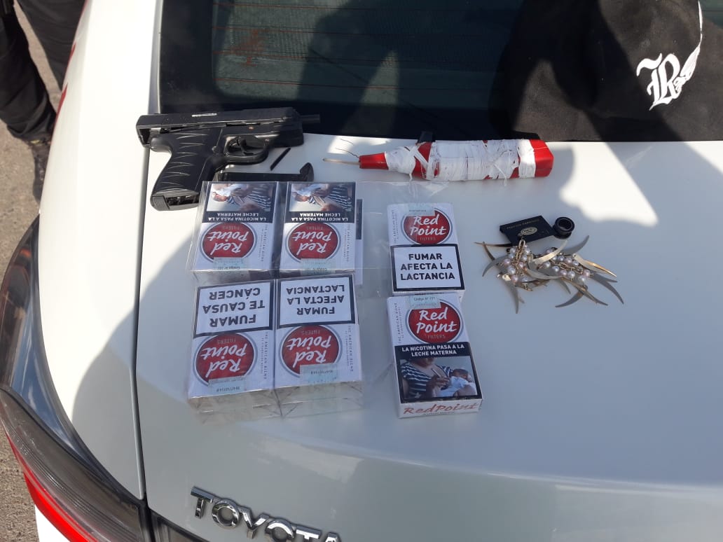 A media cuadra del kiosco, en el Loteo Santa Isabel, Axel Cristian González se puso nervioso cuando notó que se acercaba un patrullero del Comando Radioleléctrico. Minutos antes había pasado frente a la cámara de seguridad del kiosco que repentinamente fue corrida para que luego sucedan ruidos extraños que despertaron al kiosquero. González no creyó en las casualidades y comenzó un intento de fuga por el fondo de la Casa 34 de la Manzana 6, pero fue aprehendido por los policías en el fondo de la Casa 28. Llevaba encima 10 paquetes de cigarrillos, un par de aros y un candado chico -tres elementos que lo involucraban con la reciente denuncia- además de un arma de fuego de juguete y 1 magiclick.
