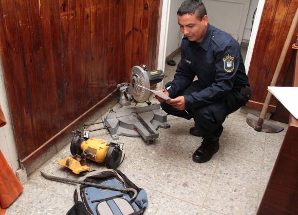 Efectivos de la Comisaría 18va persiguieron a dos sujetos en moto que robaron una carpintería, hasta obligarlos a abandonar el botín a la 1.10 de ayer en una huella del Río Yakín, Albardón. Allí dejaron una sierra circular y un esmeril sustraídos de un local de calle La Paz. Los sospechosos huyeron. Según Carlos Moreno (42), el damnificado, queda recuperar una soldadora y una máquina para cortar metales.