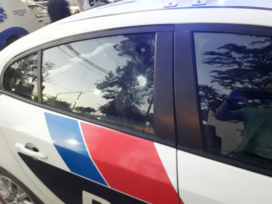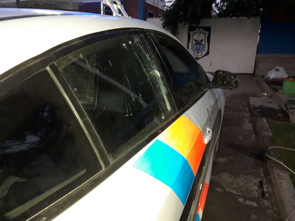De inmediato, personal del Comando Radioeléctrico se dirigió hasta el lugar para intentar intervenir en el hecho cuando fueron recibidos por una lluvia de piedras que impactaron en el patrullero, un flamante Renault Fluence