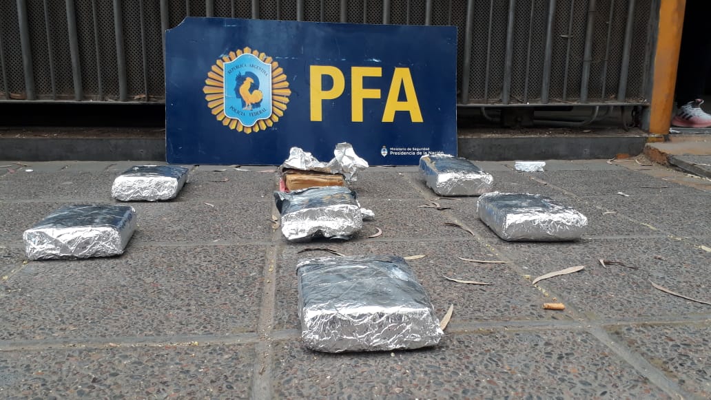 En la caja había 7 trozos en forma de ladrillos de marihuana, con un peso de más de 13 kilos.