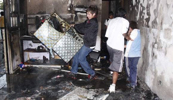 Jóvenes, mujeres, niños entraban y salían como hormigas para robar lo que pudieron: ropa, vajilla, electrodomésticos, juguetes y cualquier cosa que las llamas no hubieran alcanzado. Así se pudo ver en el fondo de una de las casas, a un grupo de chicos intentaba arrancar las ruedas al esqueleto humeante de una moto 150cc.; sobre el techo, a dos muchachos descolgando el tanque plástico del agua; a otro joven, arrancando de la pared un calefón a leña y hasta un chico huyendo a toda carrera con una tetera.