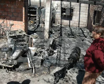 ‘Vine al depósito a prendele 3 velas al altar de la Virgen del Rosario de San Nicolás porque hoy (por ayer) es su día y me metí a la casa a tomar mate con mi esposo. Al rato me pidió que le sacara la moto y cuando salí, me topé con las llamas. No pudimos hacer casi nada’. María Rosa Pereyra de Morandi (65) se lamentaba por ese incendio que destruyó ayer todo lo que había en un depósito ubicado en el fondo de su casa de calle Colón 142 Norte, en Villa San Patricio, Chimbas. Según la mujer, las llamas consumieron 2 motos (una Daelim 50cc y una Siambretta), 2 lavarropas, una mesa, 3 reposeras, 6 sillas, una soldadora, un ventilador, tarros con 40 litros de pintura, herramientas, unos 30 pájaros y otros objetos.