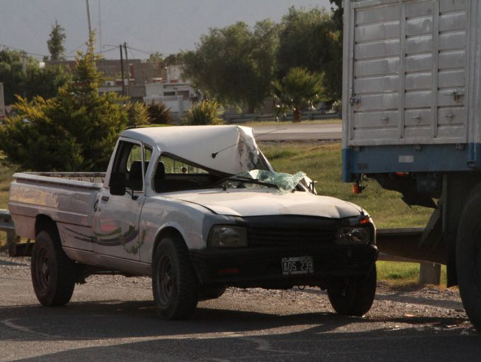 Un hombre cuya identidad no fue divulgada por la Policía, se salvó de milagro ayer sobre las 18, cuando transitaba hacia el Norte por el Lateral Este de Ruta 40 y medio kilómetro al Sur de General Acha, en Rawson, se incrustó con la Peugeot 504 que guiaba contra la parte trasera de un acoplado, estacionado con el camión que lo remolca. Informalmente, se supo que la víctima sufrió una fractura en su nariz.