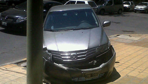 San Juan, 6 de Diciembre.- El conductor de un auto Honda City terminó contra un poste de luz de una esquina céntrica después de una mala maniobra de tránsito. El hombre resultó ileso.