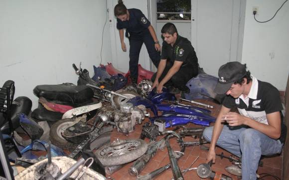 La orden era buscar una moto robada el domingo último. Con ese objetivo allanaron dos domicilios y, aunque no encontraron más que al presunto ladrón, surgió la pista de otro lugar. Los policías entonces hicieron un tercer procedimiento en Villa Hipódromo, y ahí sí tuvieron suerte. Encontraron el rodado sustraído, pero desmantelada y también partes de otras cinco motos que serían producto de ilícitos; todo esto en un precario taller que aparentemente funcionaba como desarmadero clandestino.