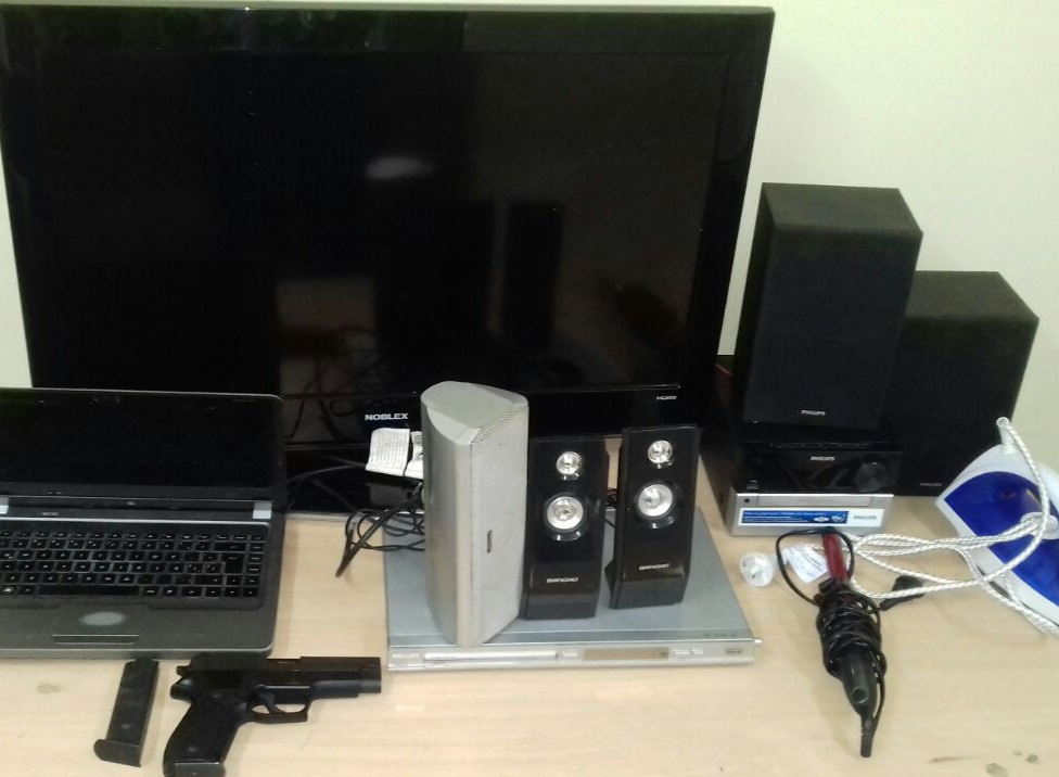 Una pistola calibre 9mm, un tv, una computadora, un equipo de música, un dvd, parlantes, una plancha y otras cosas que habían sido robadas en la casa de Villa Calingasta del gendarme Jorge Antonio Flores, fueron recuperadas por policías de la seccional 16ta (el oficial Vázquez, los cabos Rojas y Cabello, y los agentes Pereyra y Jofré) al cabo de varios allanamientos que terminaron con la captura del supuesto ladrón, un sujeto identificado por su apellido, Cortez, informó la Policía.